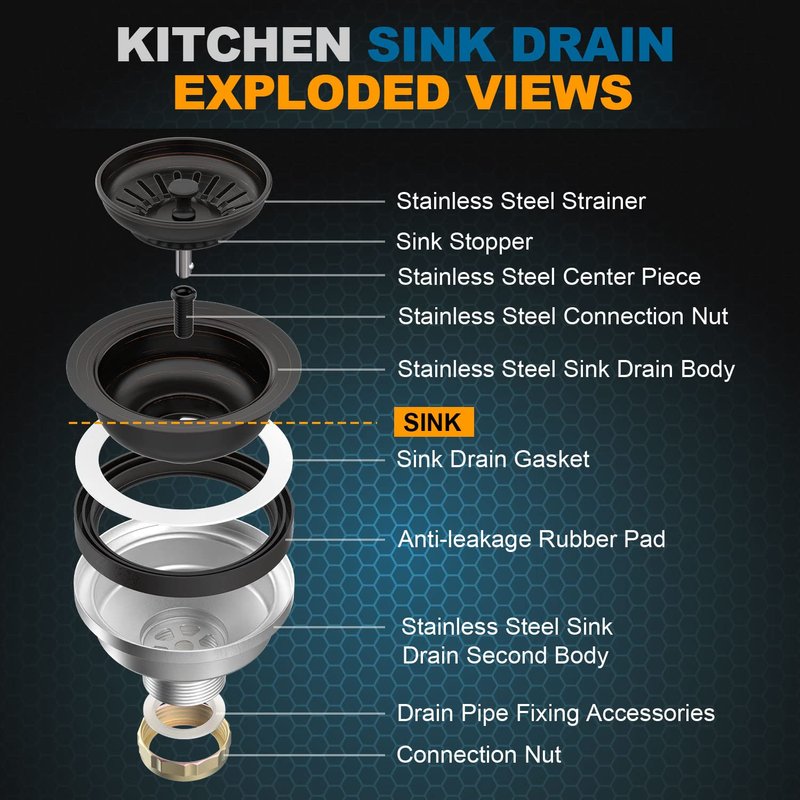 - 3-1/2 INCH KITCHEN SINK DRAIN: Fits for all standard American sink drain with 3.5 inch drain hole (Supports up to 0.59'' sink thickness). This kitchen sink drain assembly combines solid construction with ease of use