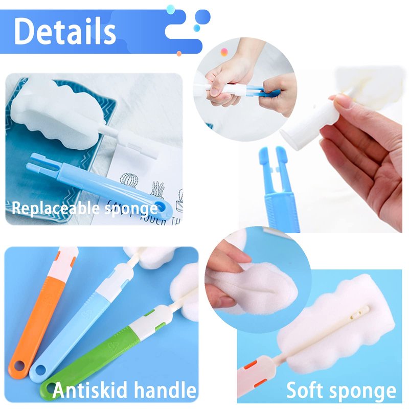 - Soft Sponge 】These cup brush heads are made of high-quality high-density sponge material with stronger water absorption, soft and will not scratch the cup. All cleaning brushes are made of BPA Free materials, it's so safe for babies to use. Suitable for plastic, glass, stainless steel and ceramic cups.