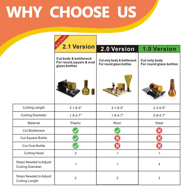 - 【Beginner Friendly and Easy To Cut】 Package comes with video and instruction book demonstrating how to use the bottle. Upgraded with rotatable blades and fixed wheel, it simplifies the adjusting process and stablizes cutting. Even non-professional DIYers can handle it well. This durable glass cutting tools will have you cutting bottles perfectly in 5 easy steps.