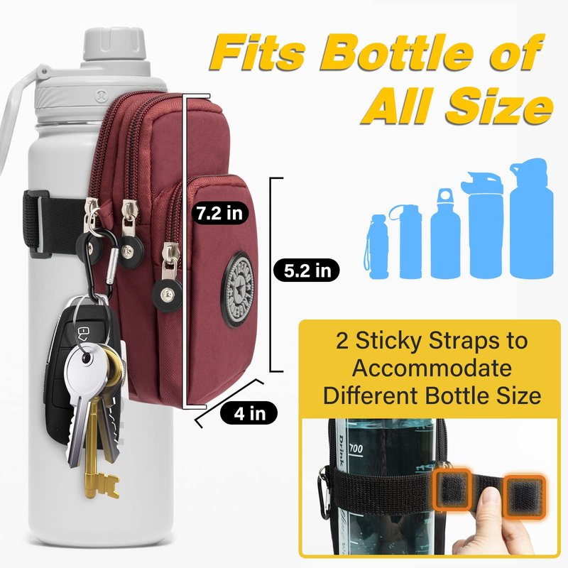 - 【UNIVERSAL FIT】- Our water bottle pouch is designed to fit most bottle size, big and small, with the adjustable strap. It stays on your bottle perfectly and won't slip.