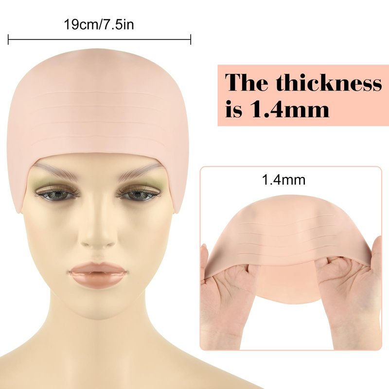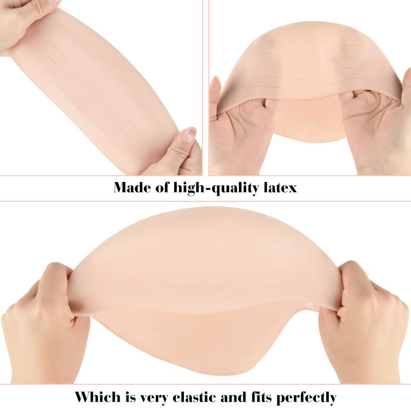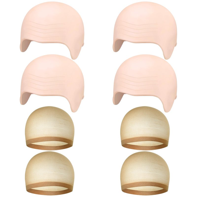 Specifications: Material: Silicone and latex nylon Quantity: 8 packs Color: Colour of skin Department: Unisex Occasionl: Halloween party cosplay, theater, movies, and general decorations Package includes: 4 x makeup latex bald cap for halloween 4 x nylon wig caps