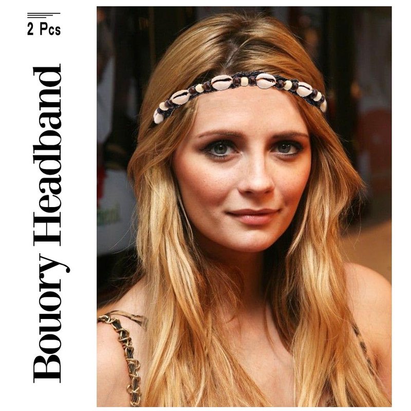 Bouory Boho Elastic Headbands Seashell Braided Hairbands Non Slip Head Bands Stretchy Headpiece for Women 2PCS