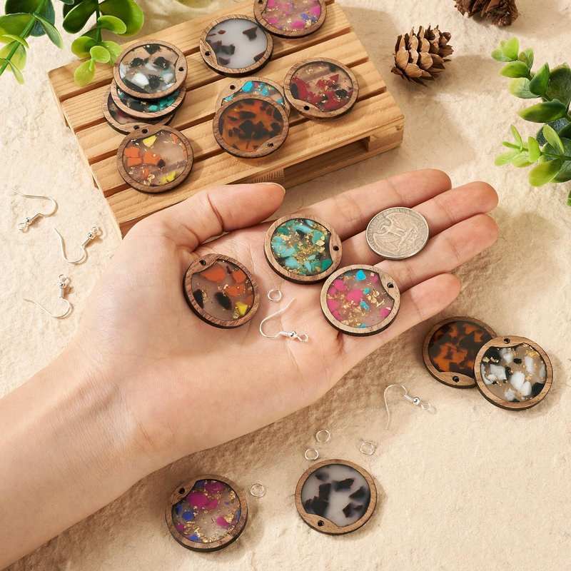 - 【Exquisite Design】--These earring pendants are combined with wood & colorful printed resin pattern, enhancing the visual effect. Also sprayed with glittering powder on the surface, look more sparkling and charming. Great for various vintage jewelry making.