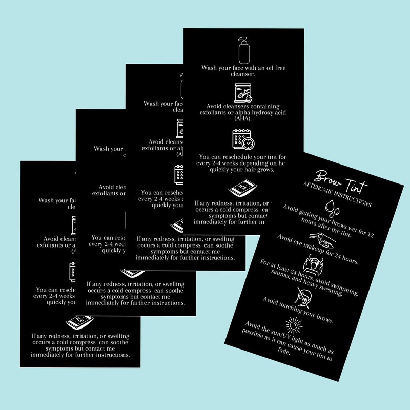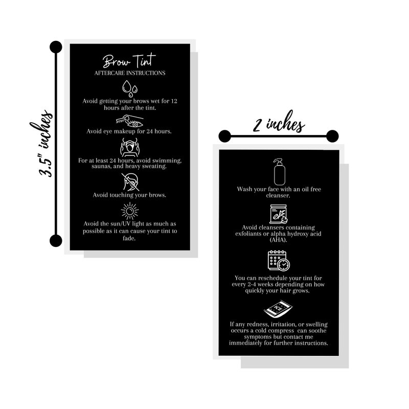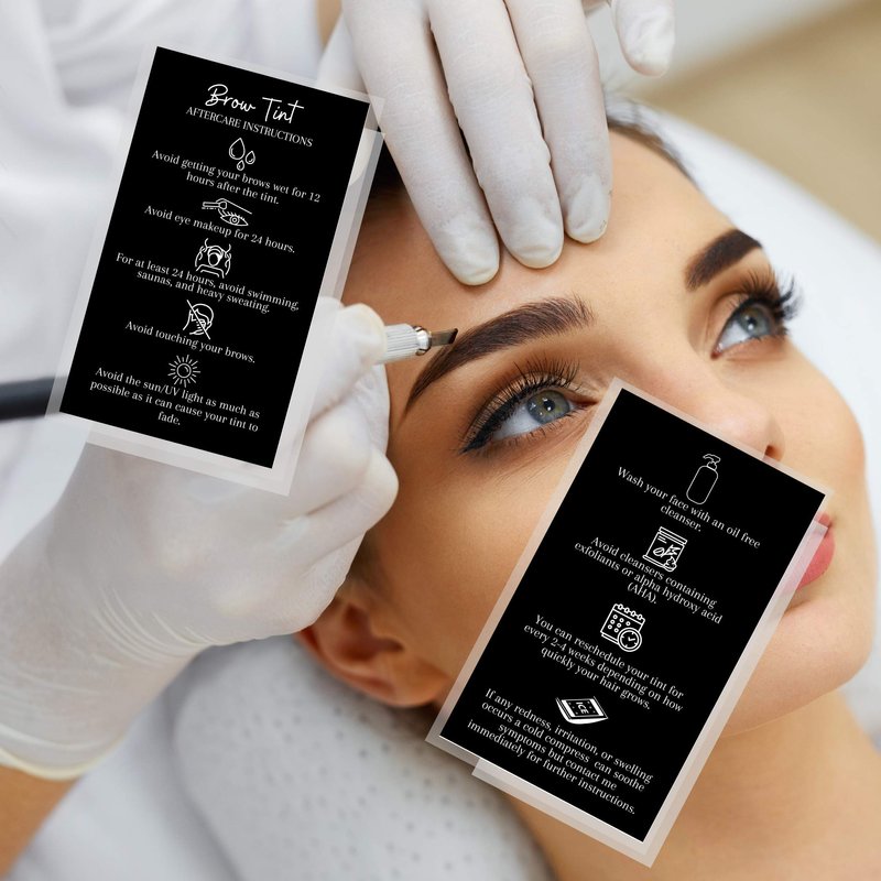 - Eyebrow tinting aftercare instructions printed on front and back!