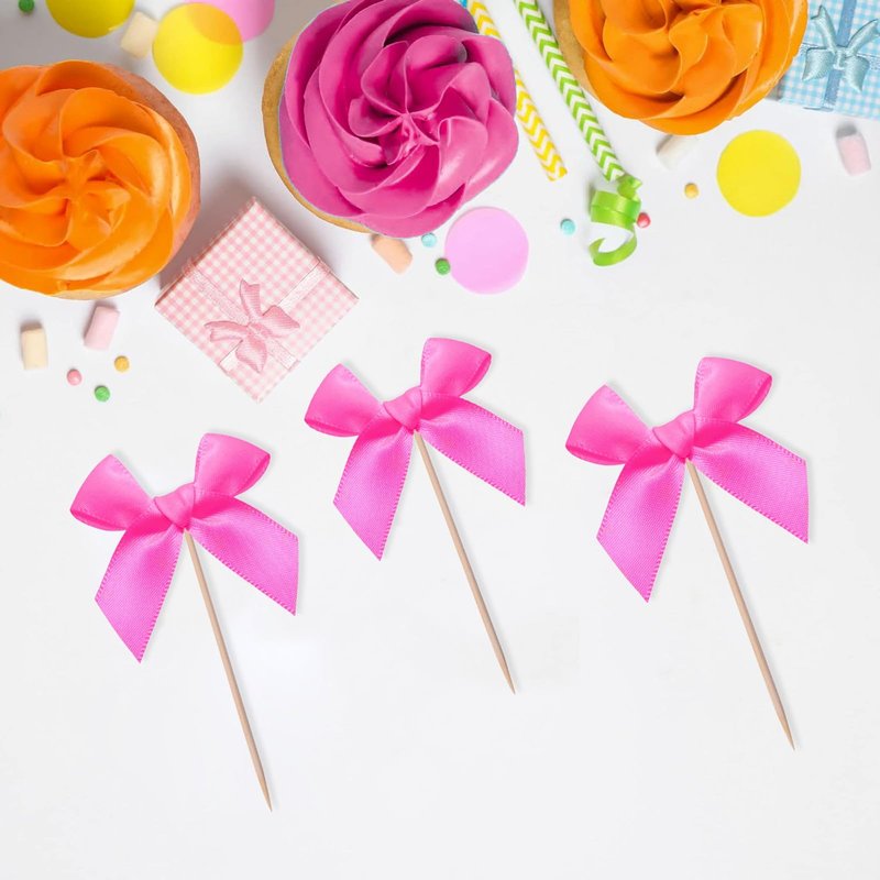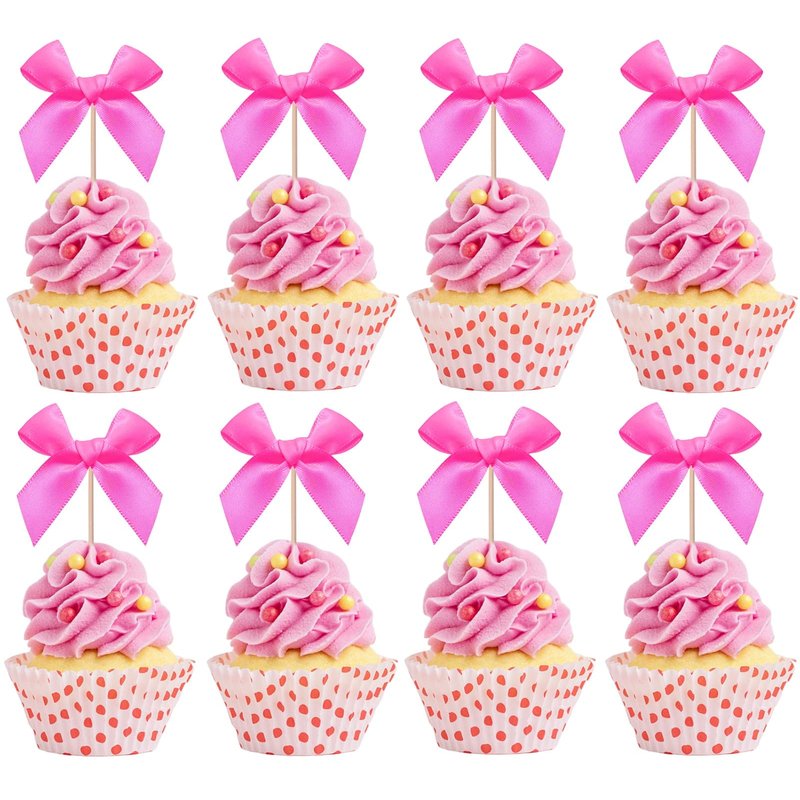- Ribbon Bow Cupcake Toppers: Crafted from ribbon materials, our Bow Cupcake Toppers ensure both durability and elegance, making them for use on all your baked goods, allowing you to indulge in your favorite treats worry-free