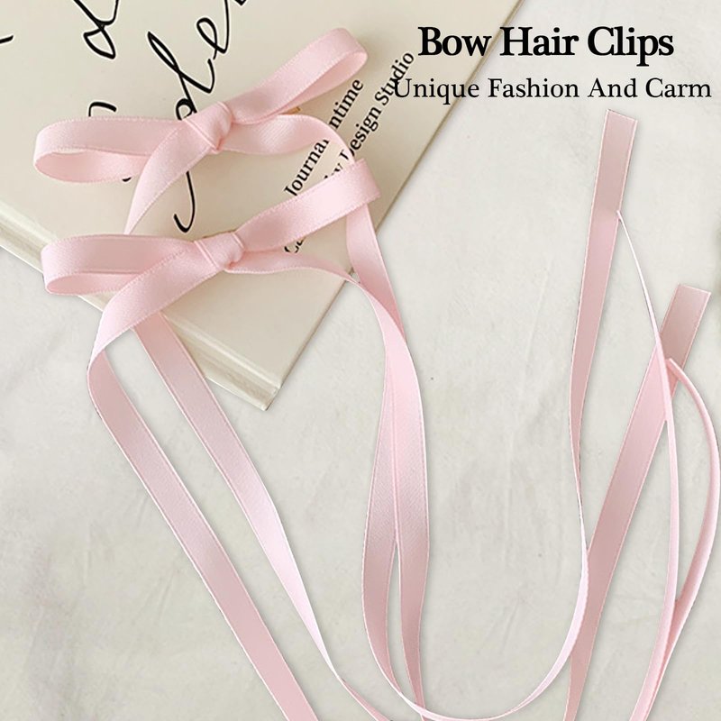 Bow Hair Clips,2 PCS Light Pink Hair Bows Tassel Hair Ribbons,Long Hair Bow Satin Hair Clip Ribbon Accessories for Women Valentine's Day (Light Pink)