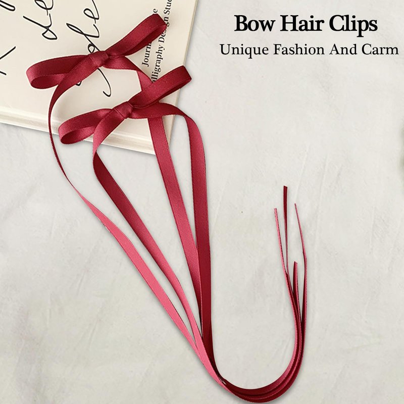 Bow Hair Clips,2 PCS Red Hair Bows Tassel Hair Ribbons,Long Hair Bow Satin Hair Clip Ribbon Accessories for Women Valentine's Day (Red)