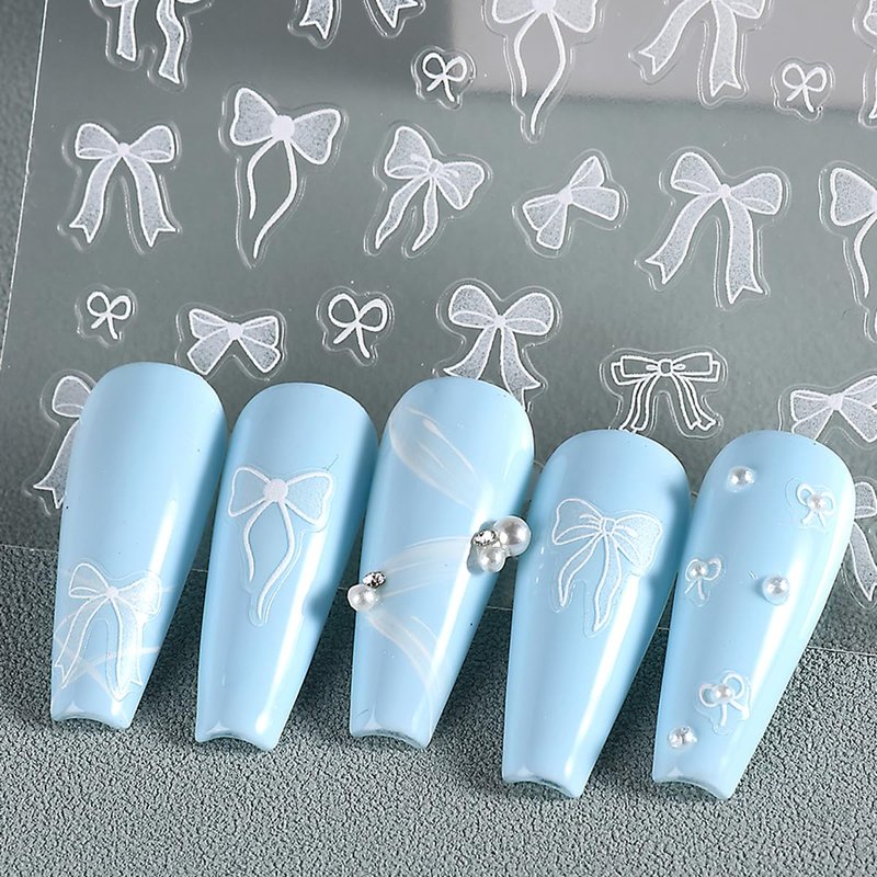 - [Cute Bow Nail Stickers] You will get 3 sheets of stereoscopic embossed nail decoration colorful bow nail stickers, unique stereoscopic effects, thicker than normal stickers, making your nails more elegant and charming.