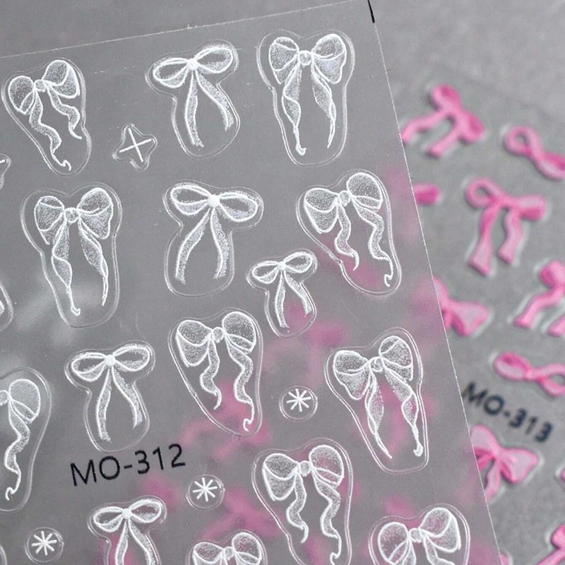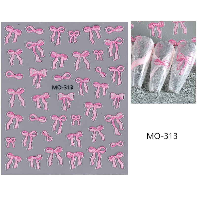 Bow Nail Stickers for Nail Art Bow Nail Decals 3PCS Self-Adhesive 5D Embossed White Pink Bow Tie Nail Art Design Stickers Supplies Gel Nail Stickers for Women Girls DIY Manicure Nail Art Decorations