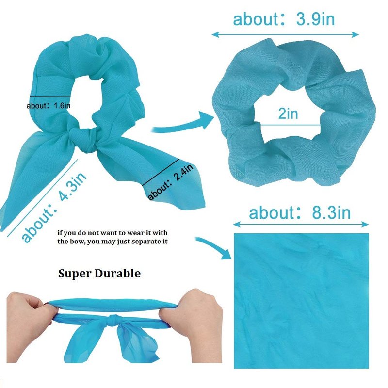 - Super Practical: The Bow Scrunchies is composed of two part. the first part is a circle Scrunchies . the second part is a square Chiffon sc. when you tie it on the circle Scrunchies, it becomes a bow-knot. so, if you do not like the bow-knot, just take it off. the square Chiffon cloth can be use as another hair ties decorative. very practical