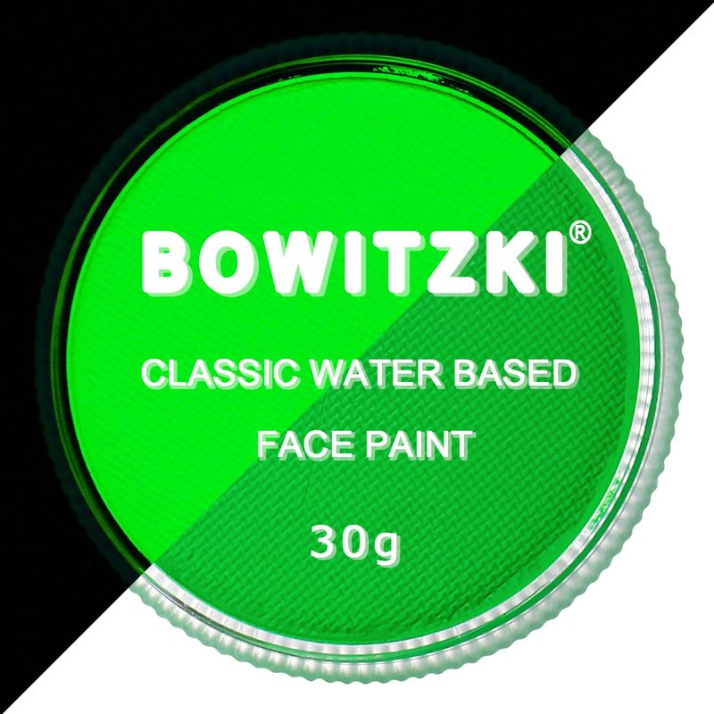 Bowitzki 30g Professional UV Glow Face Paint Body Paint Water Based Face painting Makeup Safe for Kids and Adults Split Cake Single Color (Neon Green)