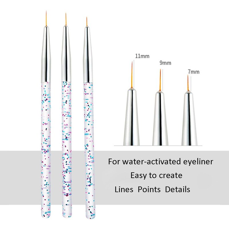 Bowitzki Professional Makeup Brush Line 3 Pieces Count Fine Point Eyeliner for Water Activated Eyeliner Graphic Liner Hydra Liner Nail Art (3 Eyeliner Brush)