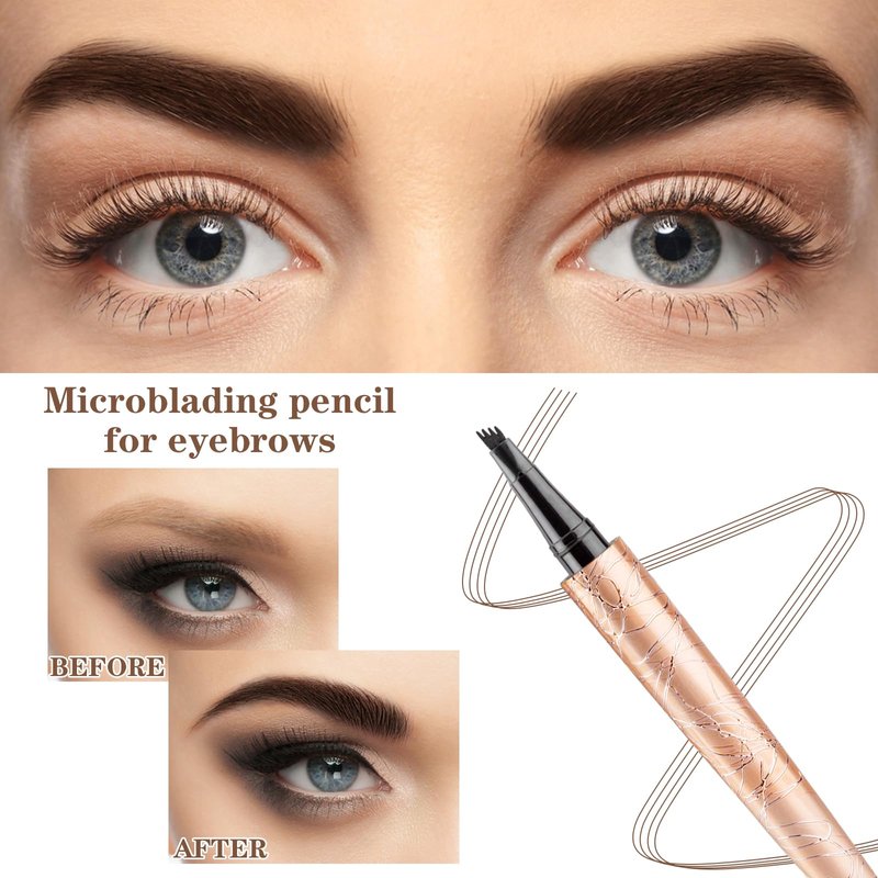 4 Tip Microblade Design:This design can save a lot of time,drawing a stroke can draw 4 lines and fill in the eyebrows quickly. Waterproof and Long lasting:This eyebrow pencil is smudge-proof and waterproof,so you can keep your natural,perfect look all day long.
