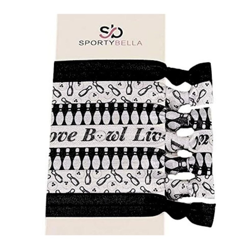 - BOWLING HAIR TIES- includes 7 bowling ball and pin themed elastic hair ties