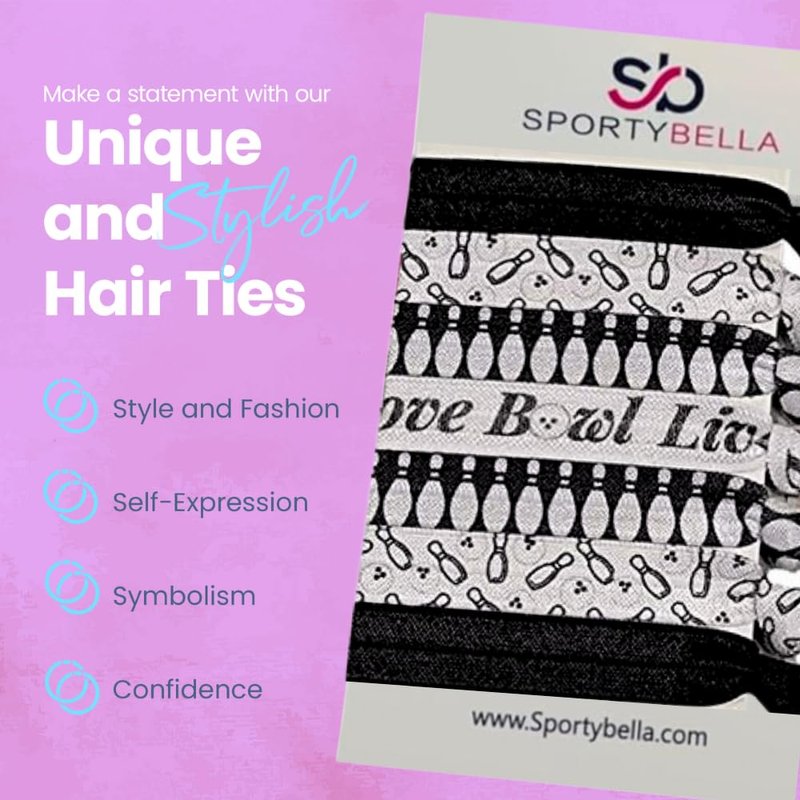 - BOWLING HAIR ACCESSORIES- Bowling Ball Hair Ties Ponytail Holders, No Tug Ouchless Hair Elastics Made with No Crease Ribbon that doesn't pull and dent your hair like the traditional ponytail holders.
