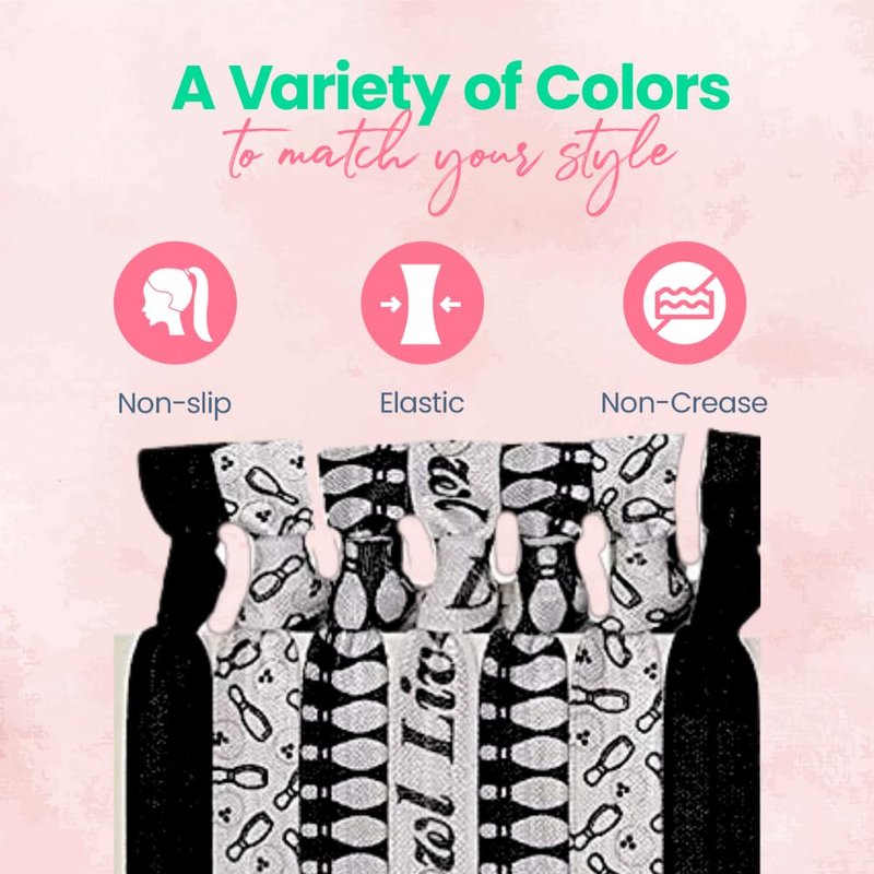 - BOWLING HAIR TIES- Adorable No Crease Hair Ties for Women, Teens and Girls