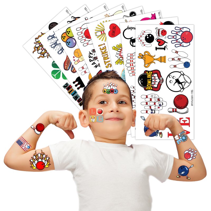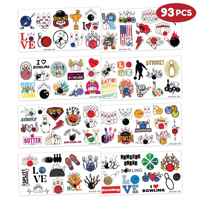 - 🎳【IDEAL TATTOOS FOR THEMED BOWLING DECOR】: This set of temporary BOWLING-themed tattoo stickers comprises 8 sheets in total, featuring a total of 93 PCS adorable, distinct designs. They are excellent for distributing as party favors and small gifts with a BOWLING theme for holidays. Each sheet measures 6.1 * 3.1 inches, making them suitable for kids of all sizes.