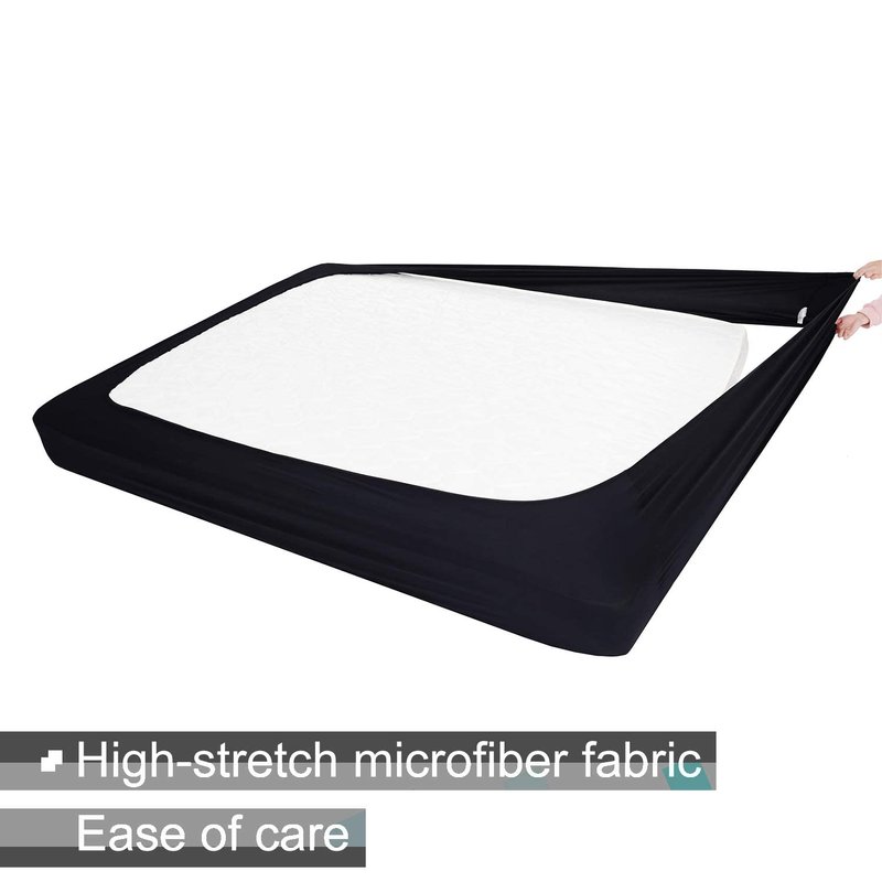 Simple effective and stylish way of a NO dust ruffle with this box spring cover/wrap, dressing up a mattress foundation and create a clean finish to your bed. Four-way stretch and jersey knit to fit tightly and stay in place snugly, ultra soft fabric feels like t-shirt, stick to the bed and wrap around 4 sides to keep fresh and clean each day. Special design for box spring and fit perfect with queen or extra long queen size.