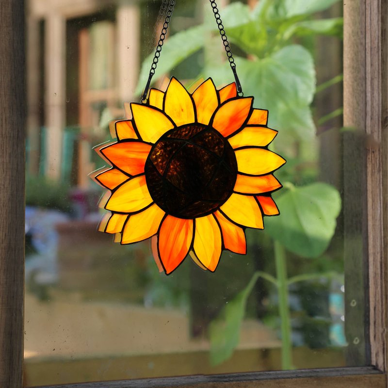 - STAINED GLASS WINDOW HANGING: Display the sunflower decorations on any window - be it sliding glass doors, kitchen windows, upstairs windows, circle-head windows, or bedroom windows. They add brilliant color to any space, serving as the perfect home decor that adds happiness and color to your area.