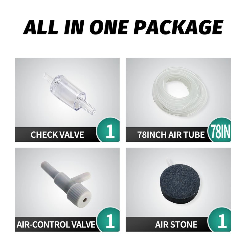 - ♥♥♥Contains All the Accessories You Need:A mini fish air pump & A air stone & A check value & A control value & A air tube(78inch)