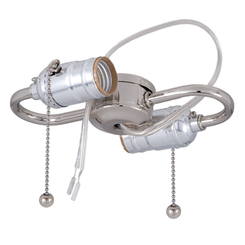 - S-type, 2-light nickel plated finish cluster body wired with medium base (E26) pull chain sockets
