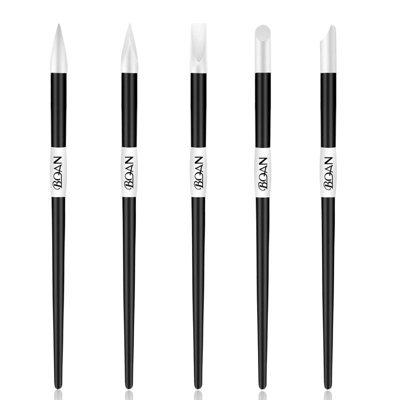 BQAN 5Pcs Nail Art Silicone Pens Acrylic Handle Nail Polish Carving Pen Rubber Tip Brushes