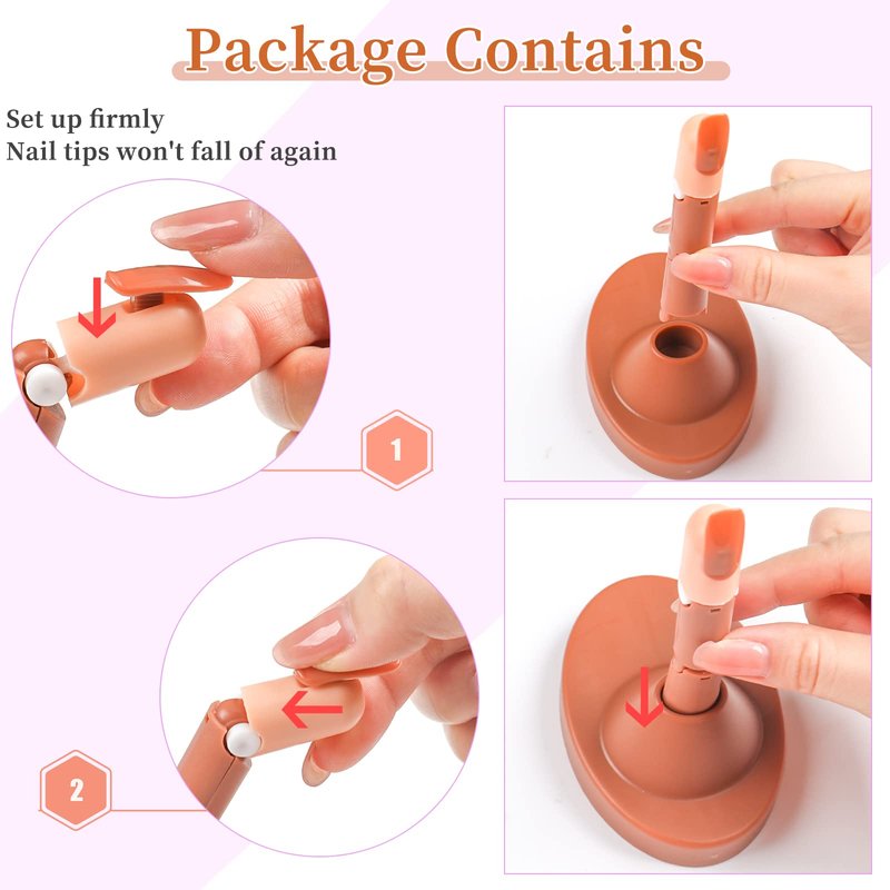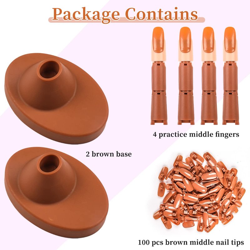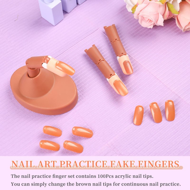 - 【Package Includes】Acrylic practice fingers set come with 4 bendable fake fingers, 2 base and 1 bag (about 100PCS) replacement brown acrylic nail tips. you can use it repeatedly to practice nail art for a long time.