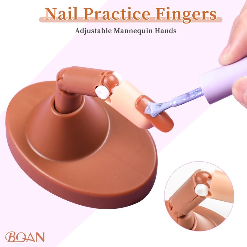 BQAN Nail Practice Fingers for Acrylic Nails, Practice Hand for Nail Training, 4Pcs Adjustable Plastic Fake Fingers for Nail Tech, with 100 PCS Refill Nail Tips and 2 Finger Base