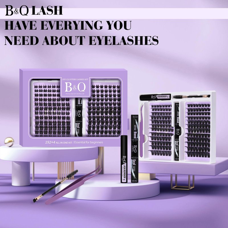 - 【B&Qaugen Lash Extension Kit】 192 pcs eyelash extension kit has 8-18 mixed length Individual clusters with eyelash bond, sealer, brush and golden tweezer. Perfect diy lash extension kit for all lashes beginners and technicians, Start your home beauty journey easily with this lash clusters kit.