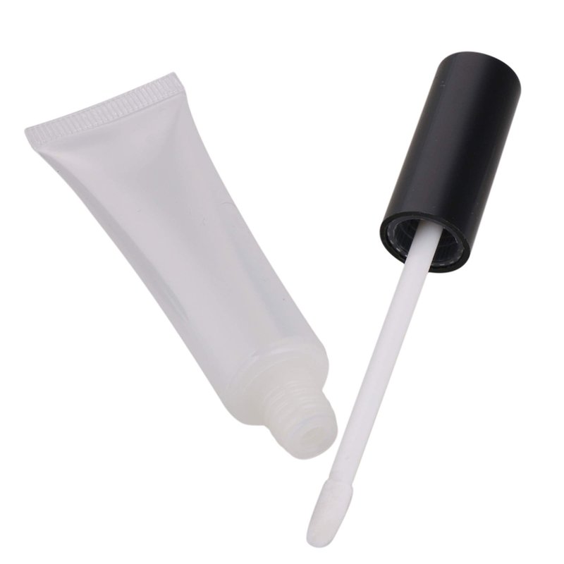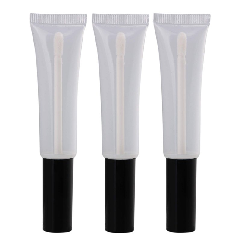 BQLZR Black Cap Plastic 15ml Empty Lip Gloss Balm Soft Tube Container with Brush Cosmetic Makeup Container Pack of 20