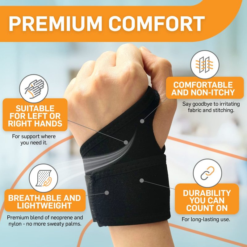 - Premium Quality Materials: Our wrist support is crafted using a high-quality blend of neoprene & nylon, designed by healthcare experts for lasting wrist pain relief
