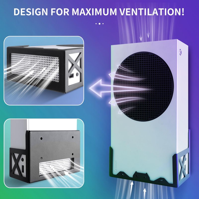 - 【Optimal Cooling 】The bottom of the Xbox Series S games mount is designed with maximum ventilation holes, our Xbox Series S wall mount keeps your X BOX running at optimal temperatures even during intense gaming sessions. No more worries about overheating and system performance.