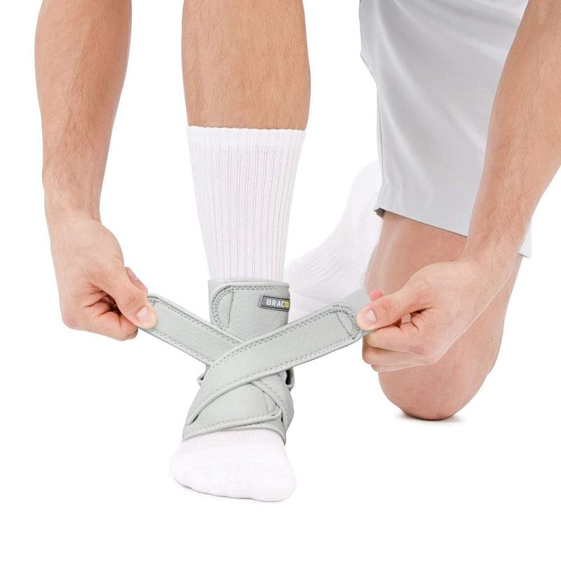 Bracoo Ankle Support Brace For Men & Women, Adjustable Compression Sleeve Strap Wrap, Sprain, Arthritis, Pain Relief, Sports Injuries and Recovery, Breathable Neoprene Brace, FS10 (Gray, S/M)