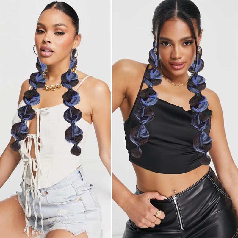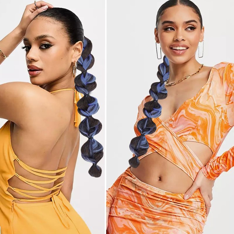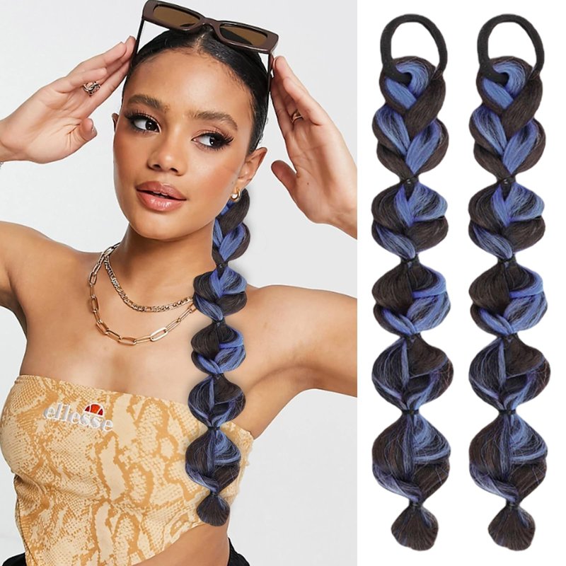 Braided Ponytail Extension with Hair Tie 2 Pcs Blue and Black Bubble Wrap Around Pony Tail Hair Extensions Elastic Hair Band Hairpieces Natural Soft Synthetic Hair Piece for Women Daily Wear
