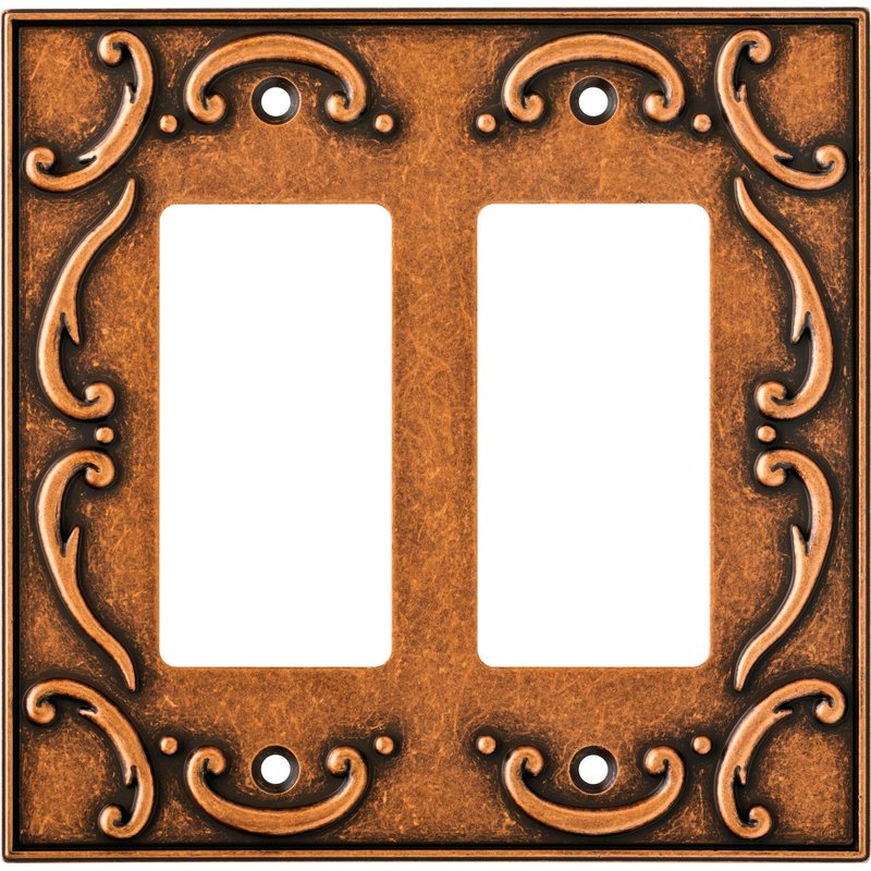BRAINERD 64260 French Lace Double Decorator Wall Plate / Switch Plate / Cover, Sponged Copper
