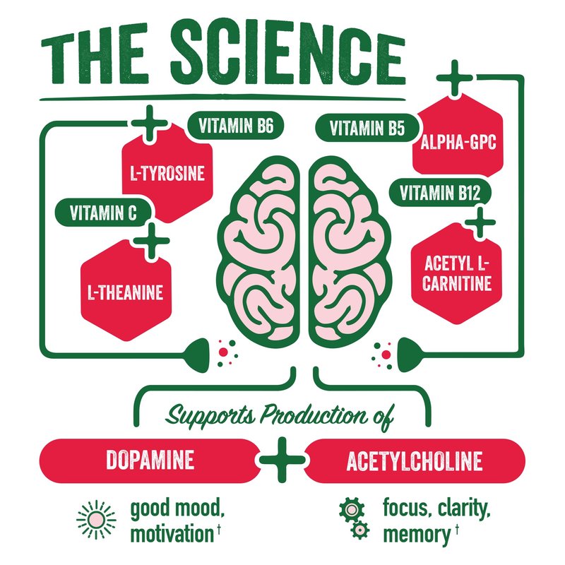 - FUNCTIONAL INGREDIENTS: Our blend is packed with powerful superfoods and functional ingredients to support focus, clarity, and mood. Including: Alpha GPC, L-Theanine, Vitamin C, Vitamin B5, Vitamin B6, Vitamin B12, Caffeine from Organic Green Tea Leaf Extract, and other powerful antioxidants.