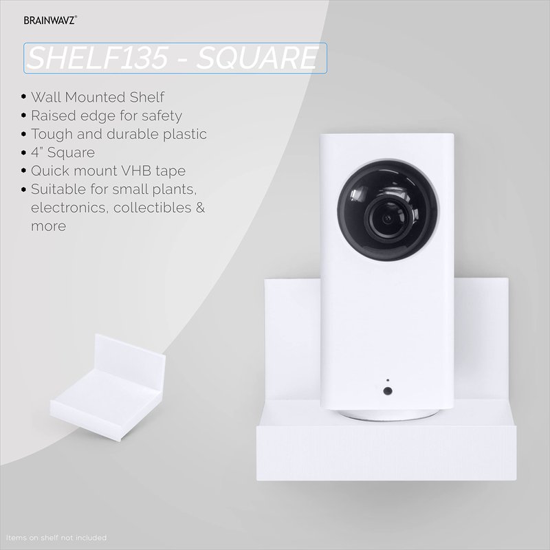 BRAINWAVZ Screwless 4" Universal Shelf for Cloud Security Camera, Baby Monitor, Small Speakers, Electronics & More, No Tools, VHB Tape Strong Adheasive, Easy to Install (White)