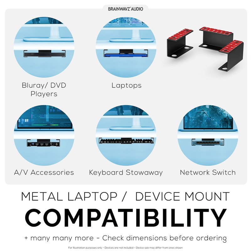 - UNDER DESK LAPTOP HOLDER MOUNT & MORE: Suitable for laptops and almost any device that is less than 47mm /1.8" thick, this includes Laptops, Macbooks, Surface, Cable Boxes, Keyboards, Modems, Wi-Fi Routers, Nintendo Switch, Smart TV Boxes, Streaming Devices, Files, Folders & MORE!