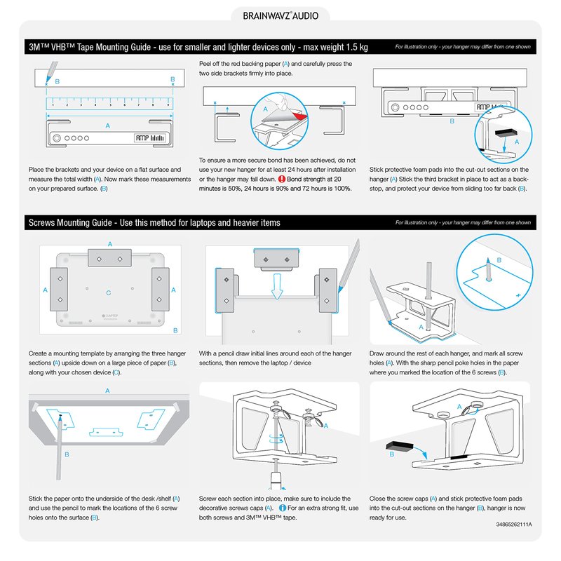 - SCREW MOUNT OPTION: Use the included screw mount hardware to firmly fix the hangers under desks and shelves for use with heavier laptops and other delicate, expensive equipment.