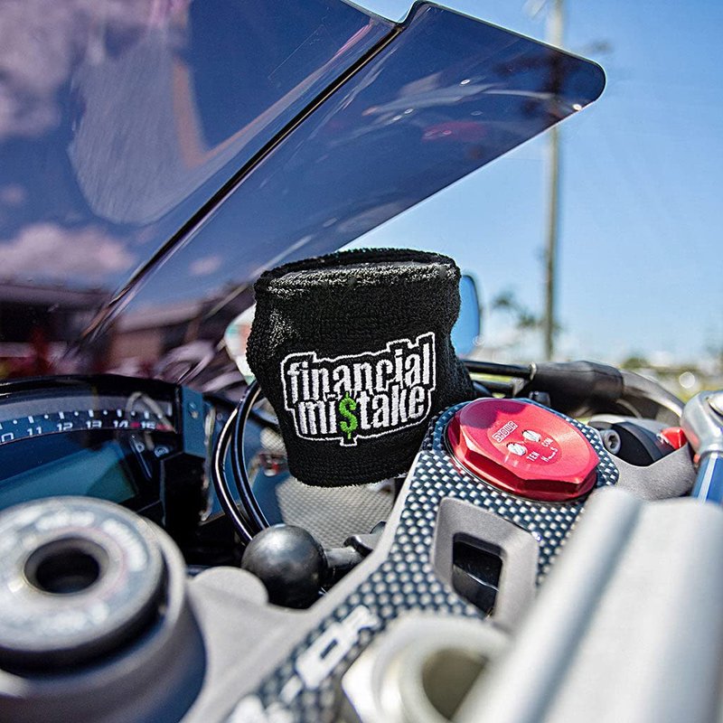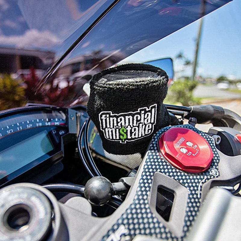Brake Fluid Reservoir Cover Sock for Motorcycles, Sporbikes and Gifts by Moto Loot (Financial Mistake)