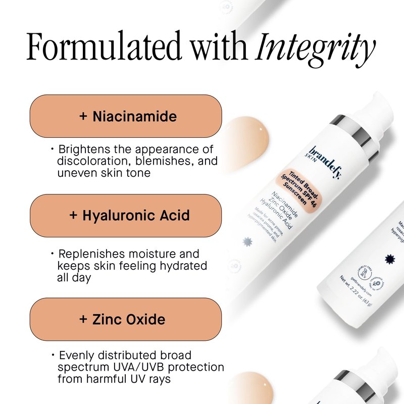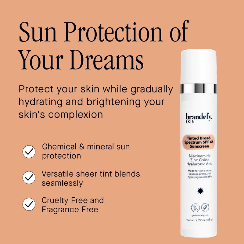 Brandefy Tinted SPF 46 Face Sunscreen - Broad Spectrum Sunscreen with Clear Zinc Oxide, 2.2 oz Pump - Made In The USA.