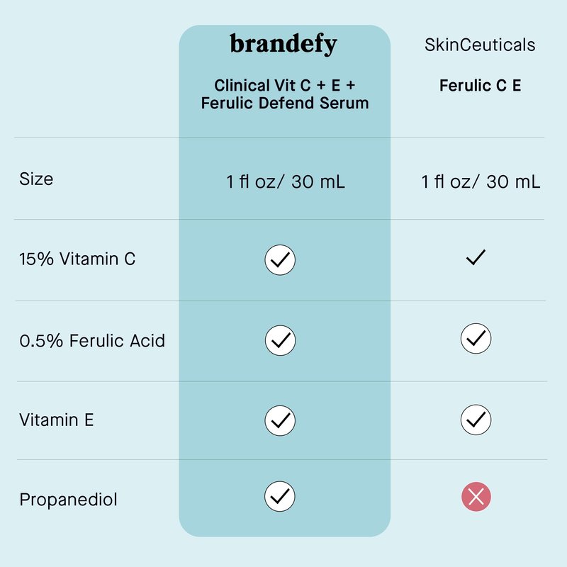 - CE Ferulic Serum: The antioxidant properties of this vitamin E acetate can help neutralize free radicals, aid in soothing inflammation and will nourish your skin. For double the brightening effects, pair with Niacinamide, Azelaic Acid, Kojic Acid and/or Alpha Arbutin. C E ferulic acid serum gives your skin numerous anti aging benefits in a single bottle. Brandefy offers pharma ceuticals and cosme ceuticles skin products at affordable prices for more youthful looking skin.