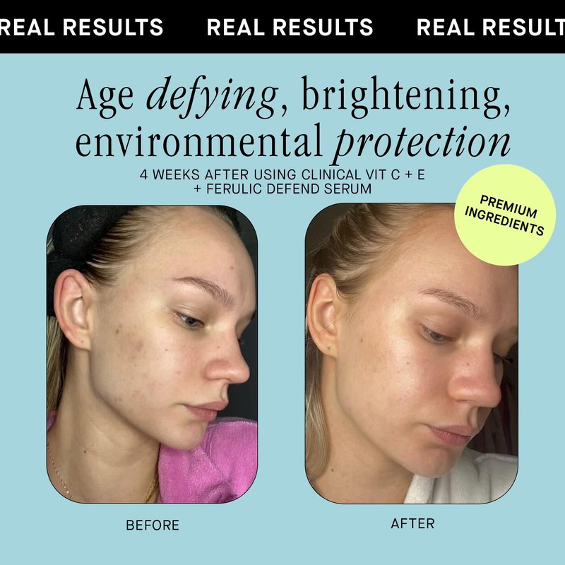 - VISIBLE RESULTS: Clinical studies of these ingredients show a reduction in the appearance of fine lines and wrinkles, brightening of the skin’s complexion and overall firmer skin when using a vitamin c e ferulic acid serum. When using this discoloration correcting serum you will see a reduction in hyperpigmentation while you also protect your skin from future UVA/UVB damage. Your skin will be left smoother, more radiant, and glowing!