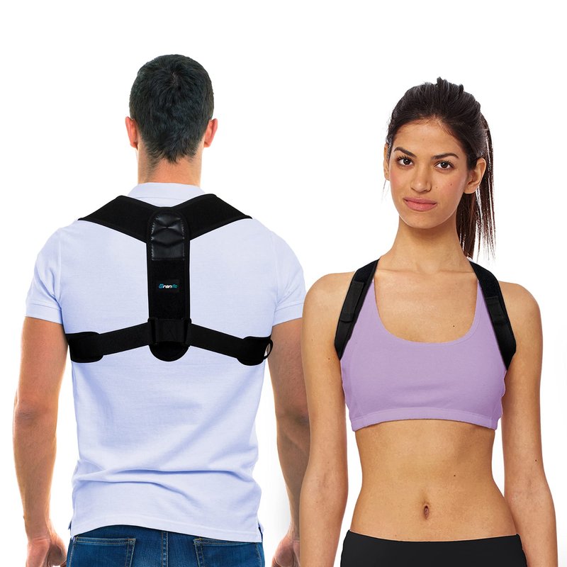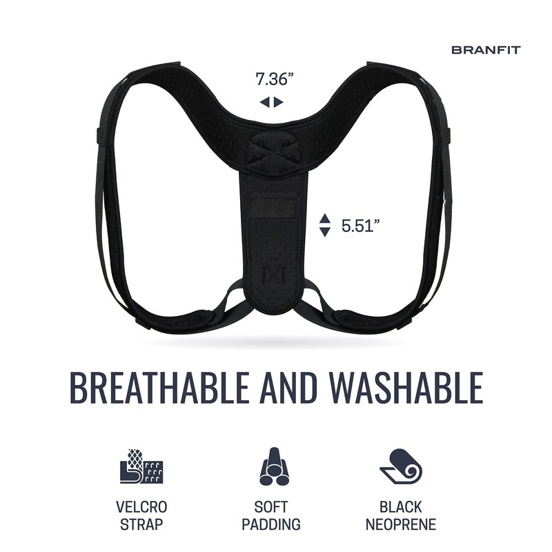 - PAIN RELIEF: Proper posture can reduce headaches, neck, and back strain. Decrease back and neck pain with the BRANFIT Posture Corrector as you retrain your spine. Developed for clavicle and lumbar support. Ideal for minor age-related kyphosis, back pain, and slouched shoulders.
