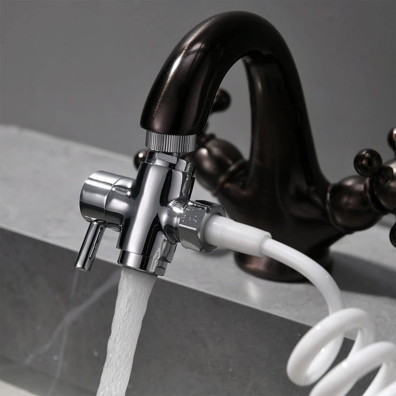 This diverter valve is designed to connect a handheld shower hose to a kitchen sink faucet with a removable aerator or a bathroom sink faucet. It has the function of switching the water flow from the faucet to the shower nozzle(hand sprayer attachment).