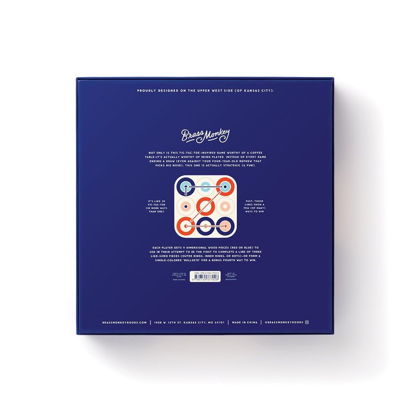 - How to Play: Be the first player to use their pieces to complete a line of three like-sized circles–or form a single colored 'bullseye' as a sneaky fourth way to win. Suitable for 2 players so take turns.