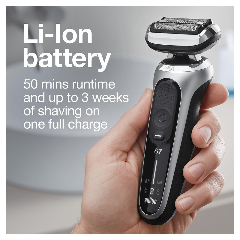 Braun Electric Razor for Men, Waterproof Foil Shaver, Series 7 7027cs, Wet & Dry Shave, with Beard Trimmer, Rechargeable, Charging Stand and Travel Case Included, Silver Black