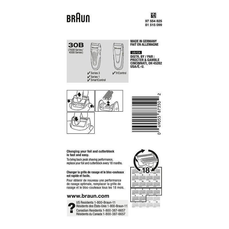 Braun Series 3 Old Generation Electric Shaver Replacement Head - 30B - Compatible with Electric Razors SmartControl, TriControl, 340, 330, 320, 310, 300