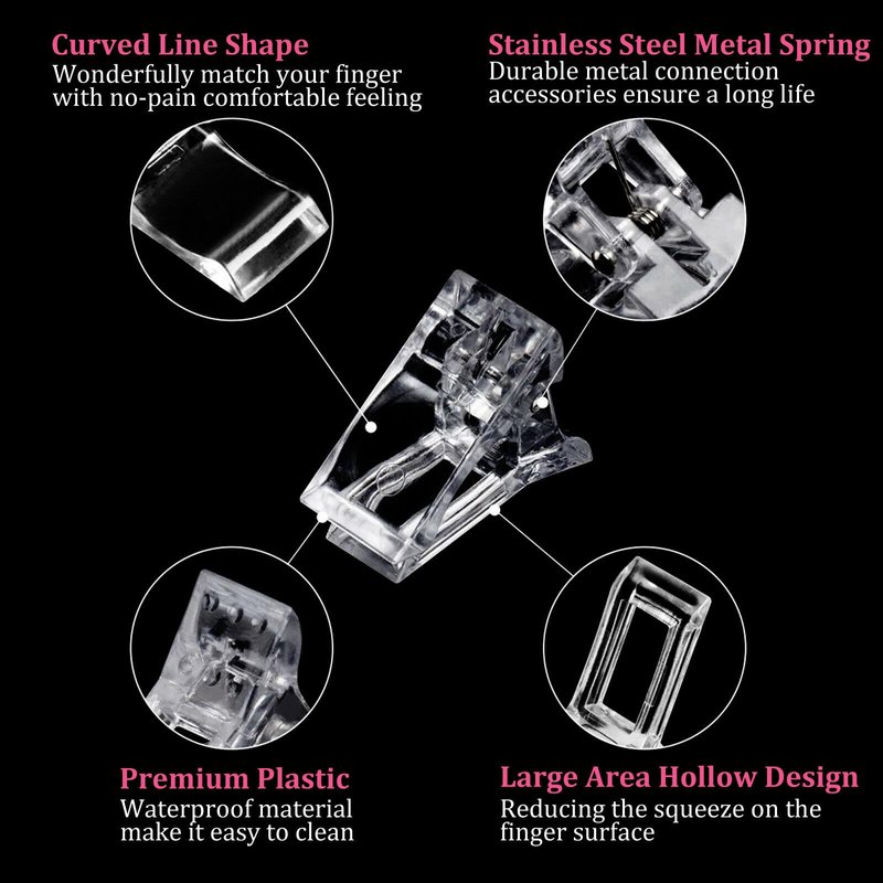 - 【New Upgraded Design】Non-marking fixed nail clipper, it fits perfectly with the arc, the force is even, and not be too tight.The curvature of the nail extension clips are designed according to human fingers, which is suitable for most people. After professional debugging, the tightness of the clip is appropriate, which can stably fix the nail tips without any pressure. It makes it easier and faster to fix nail molds, create the perfect manicure.