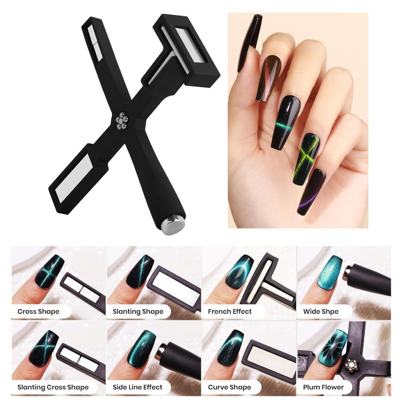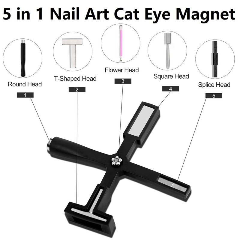 - 【5-in-1 Cat Eye Magnet】Unlock endless nail design possibilities with our versatile nail magnet tool, featuring five interchangeable nail tips. Whether you desire captivating cat's eye effects, dazzling flashes, or other mesmerizing designs, this tool empowers you to achieve them effortlessly.
